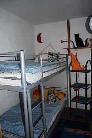 Wohnung N: Kinderzimmer mit Tür zum Wohnbereich mit Etagenbett